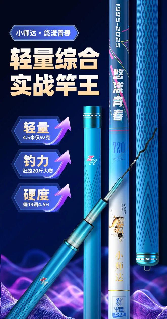 岸边掐鱼,想要分秒必争?小师达·悠漾青春定位于:全能综合竿,全水域通杀,2000-2500的钓力值. 28偏19调,4.5H硬度.综合鲤竿,真正做到一竿打天下。